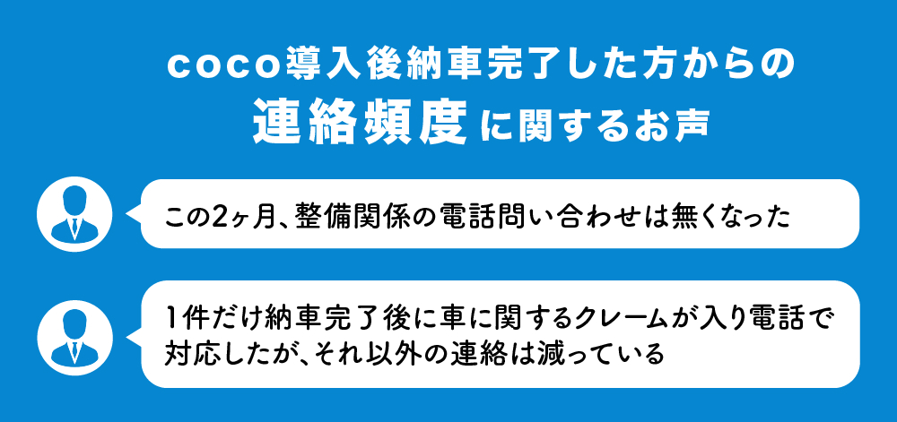 納車後の整備に関する問い合わせが、販売店に直接来てしまう