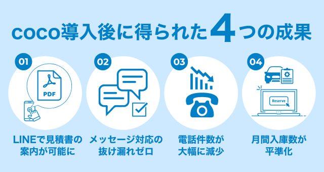 本川様:主に2つの理由があります。ひとつはお客様から費用のお問い合わせがあるとすぐに見積書をPDFで迅速に送付できる利便性があるため。もうひとつは、cocoのLINE Chat管理機能で抜け漏れのない顧客管理ができるためです。