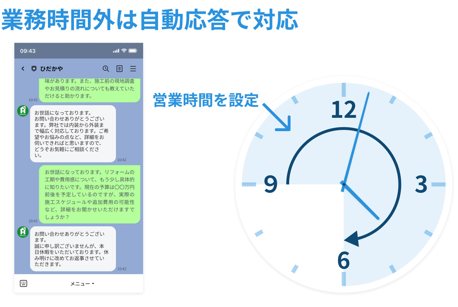 濱田様:一番のポイントは”LINEによる迅速な返信”だと感じています。電話であればその場で用件を解決できますし、LINEの場合も返信までの時間差は生じます。ただ、それはお客様とすぐに電話がつながった場合です。LINEによる迅速な返信を徹底することで、お客様にも返事を待つというストレスを与えずに済んでいるんだと感じています。